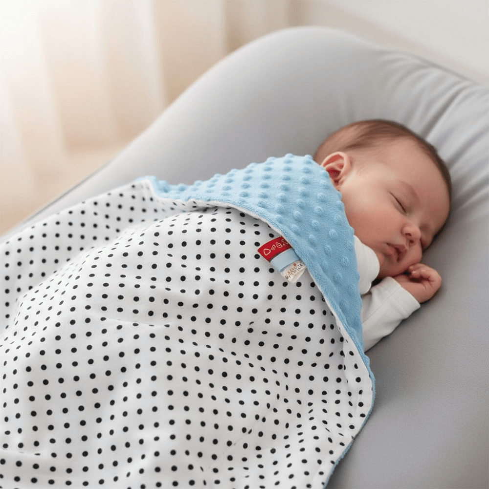 Úvod » Deky » Zateplené deky MINKY / bavlna » AMAL Deka MINKY modrá + čierne bodky, 75x100 cm